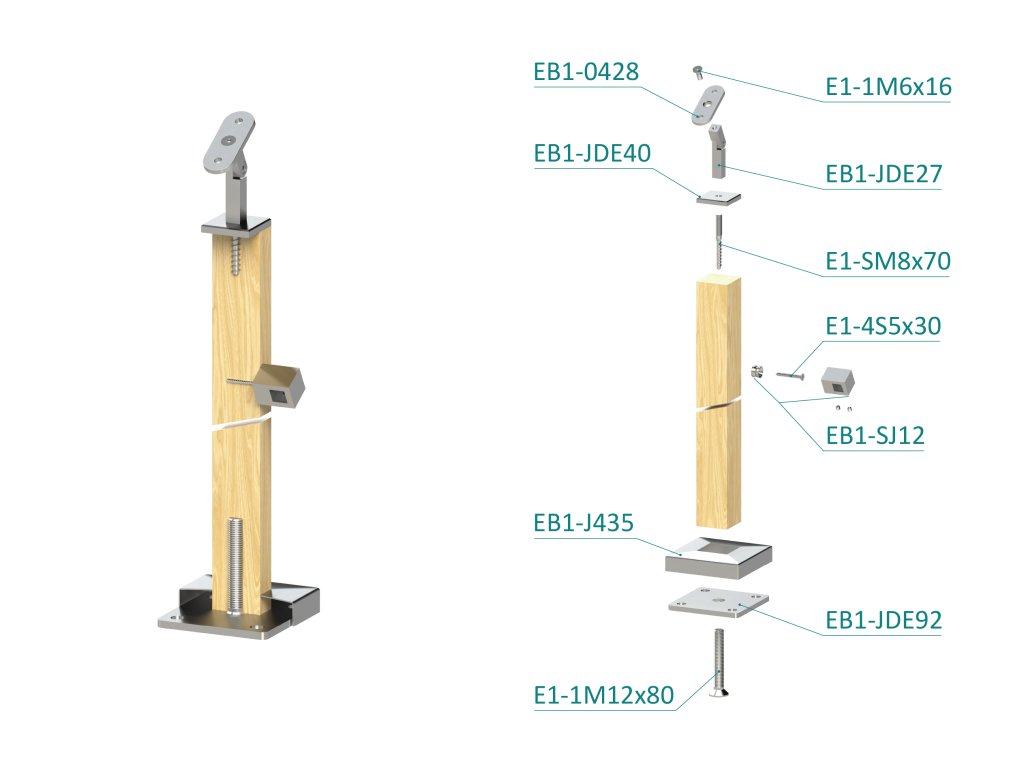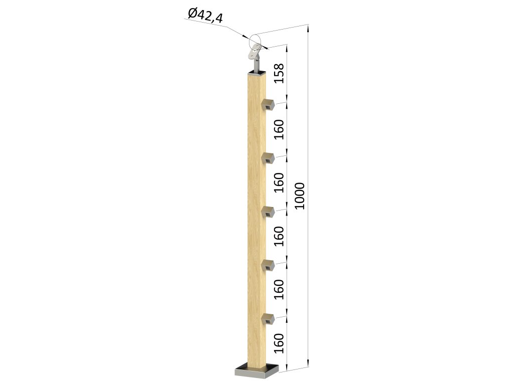 drevený stĺp, vrchné kotvenie, 5 radový, priechodný, vrch nastaviteľný (40x40mm), materiál: buk, brúsený povrch bez náteruDodatočné parametre