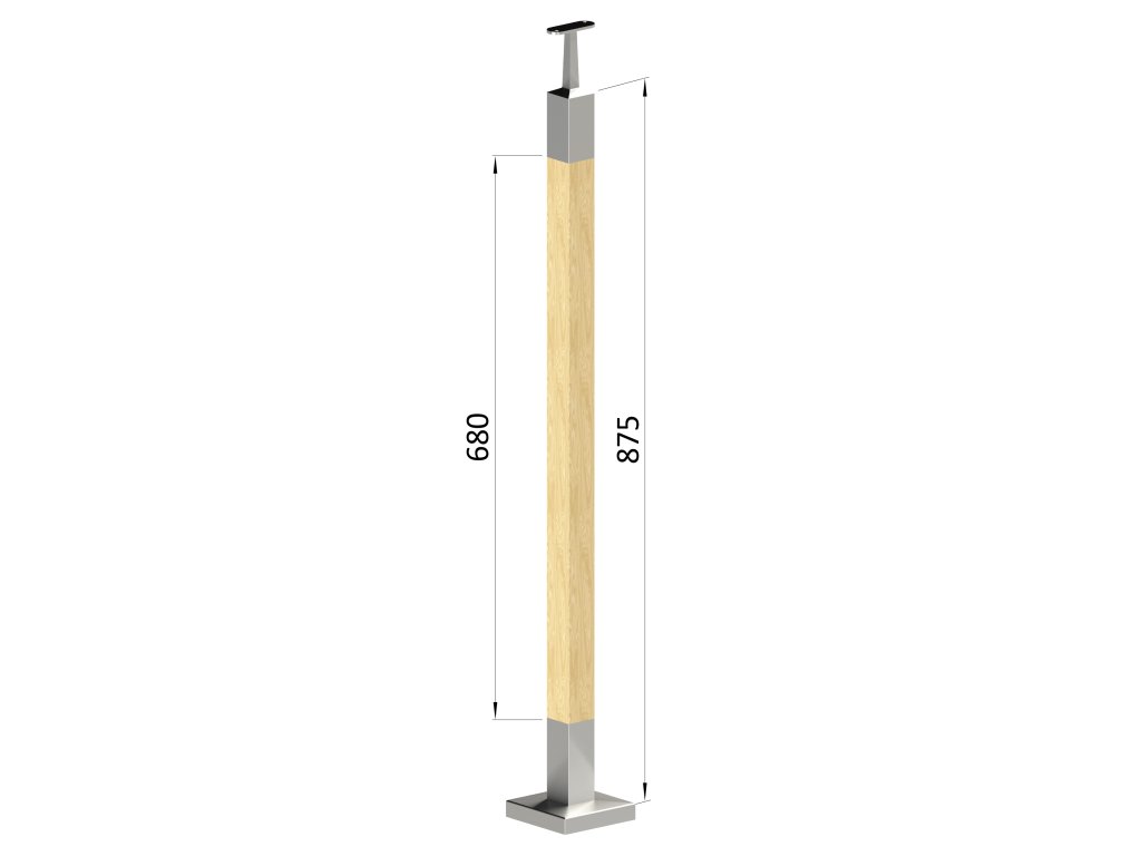 drevený stĺp, vrchné kotvenie, bez výplne, vrch pevný (40x40mm), materiál: buk, brúsený povrch bez náteru