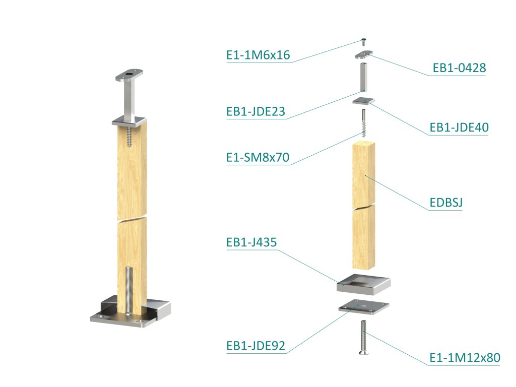 drevený stĺp, vrchné kotvenie, bez výplne, vrch pevný (40x40mm), materiál: buk, brúsený povrch bez náteru