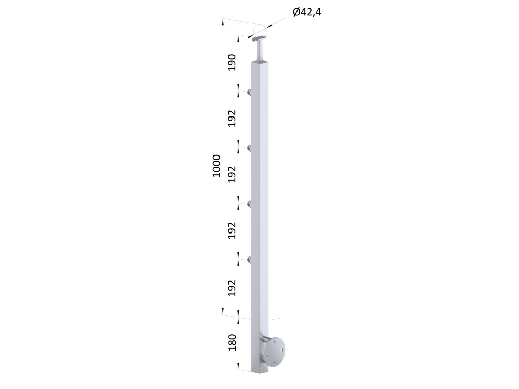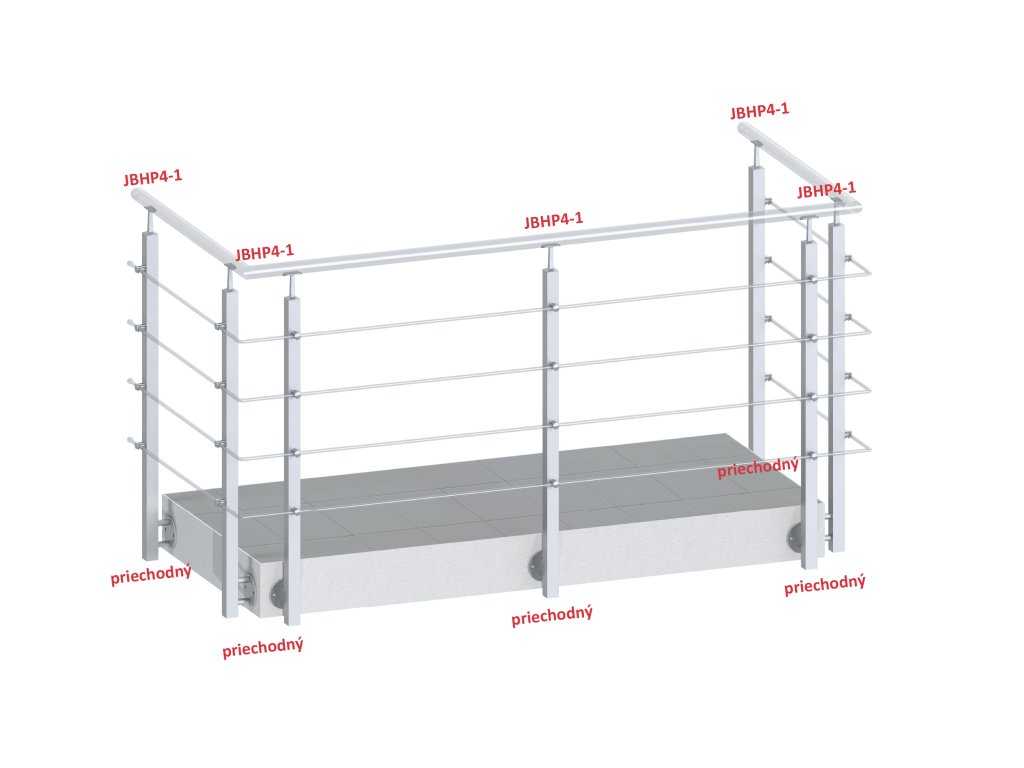 nerezový stĺp, bočné kotvenie, 4 radový priechodný, vonkajší, vrch pevný (40x40mm), brúsená nerez K320 /AISI304Dodatočné parametre