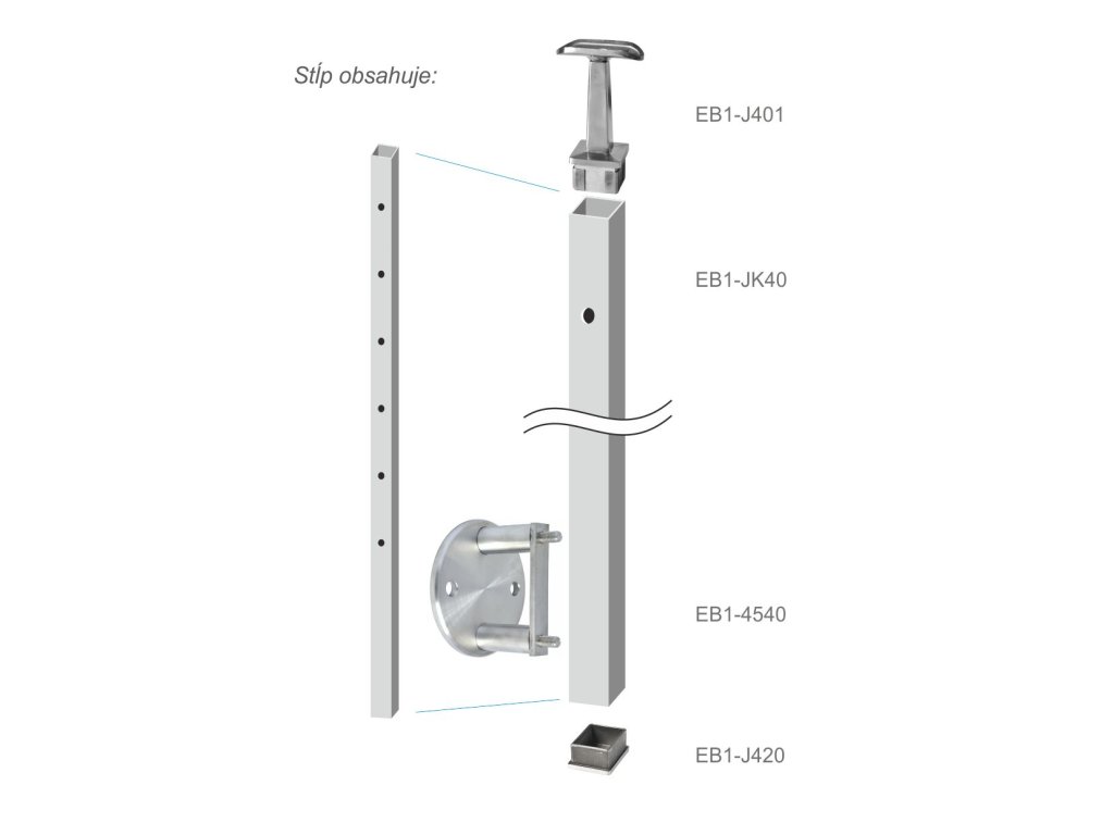 nerezový stĺp, bočné kotvenie, 6 dierový priechodný, vrch pevný (40x40mm), brúsená nerez K320 /AISI304Dodatočné parametre