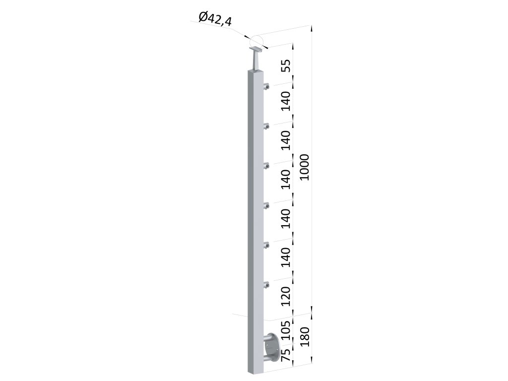 Nerezový stĺp, bočné kotvenie, 6 radový priechodný, vnútorný, vrch pevný (40x40mm), brúsená nerez K320 /AISI304