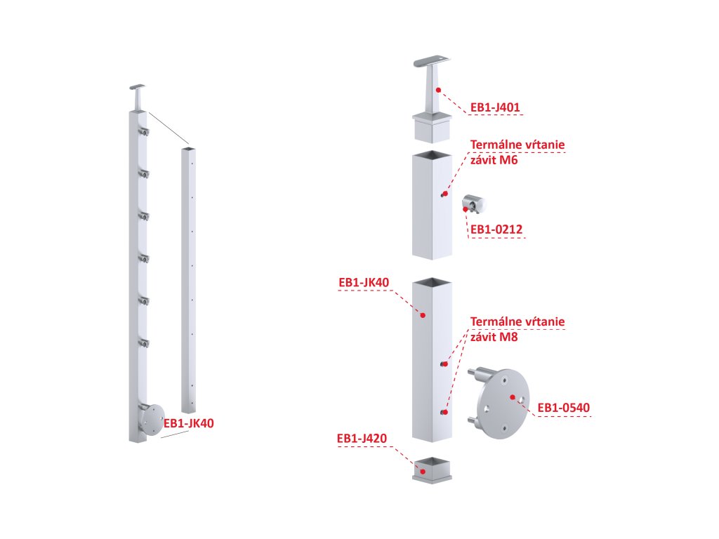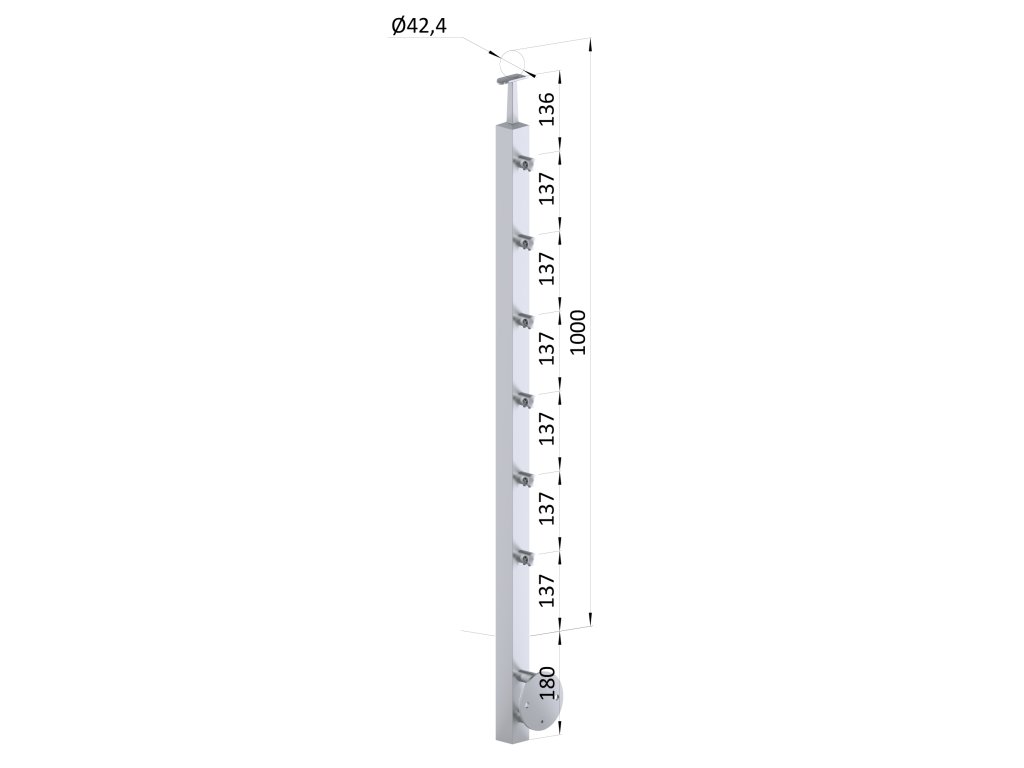 nerezový stĺp, bočné kotvenie, 6 radový priechodný, vnútorný, vrch pevný (40x40mm), brúsená nerez K320 /AISI304Dodatočné parametre