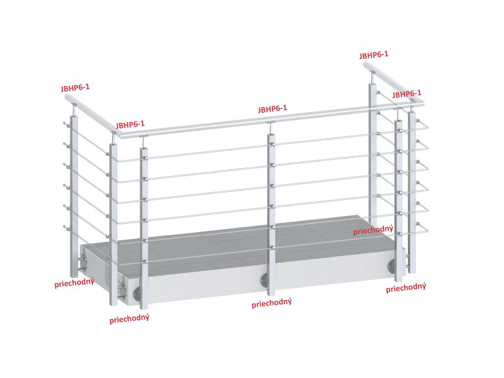 nerezový stĺp, bočné kotvenie, 6 radový priechodný, vonkajší, vrch pevný (40x40mm), brúsená nerez K320 /AISI304Dodatočné parametre
