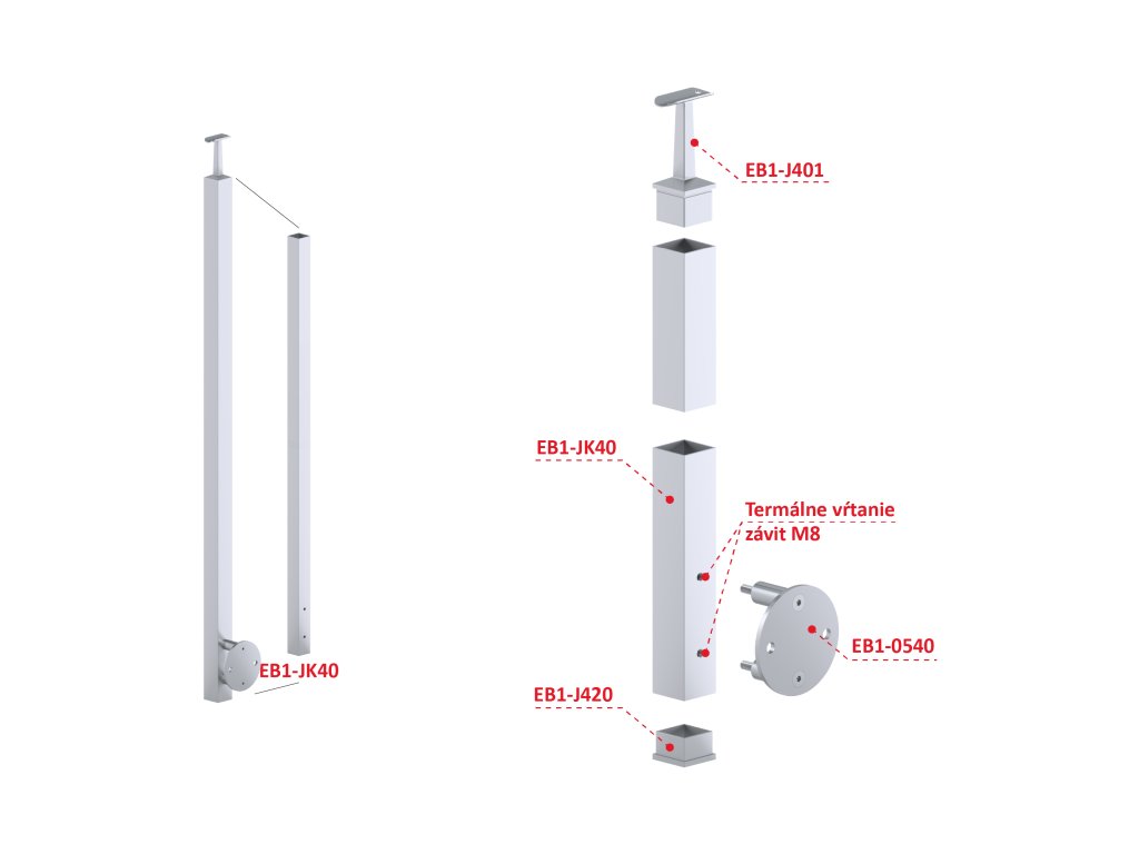 nerezový stĺp, bočné kotvenie, bez výplne, vrch pevný (40x40x2.0mm), brúsená nerez K320 /AISI304Dodatočné parametre