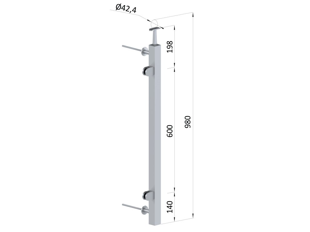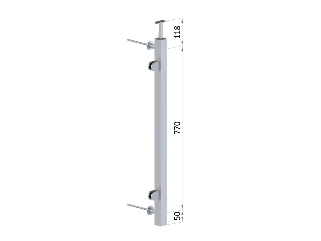 nerezový stĺp, bočné kotvenie, výplň: sklo, ľavý, vrch pevný, (40x40x2.0mm), brúsená nerez K320 /AISI304