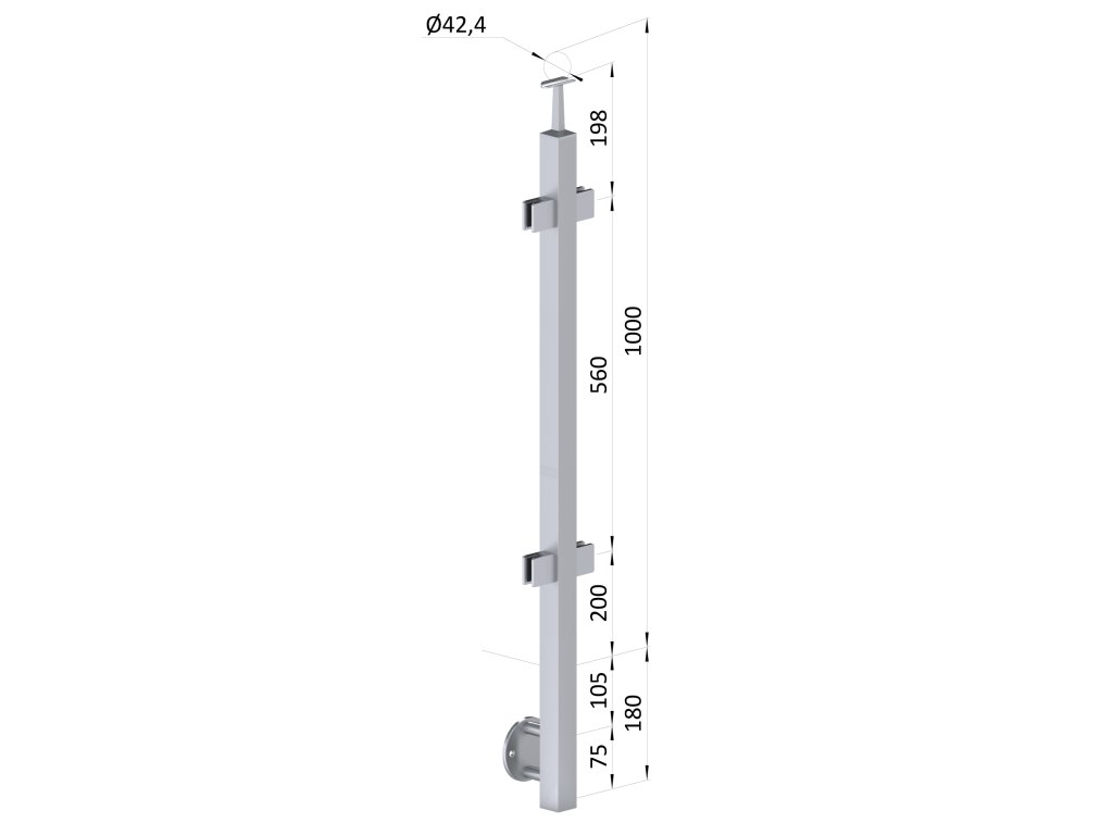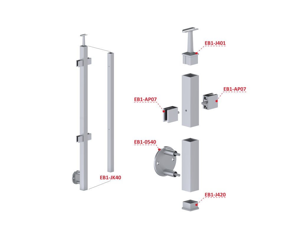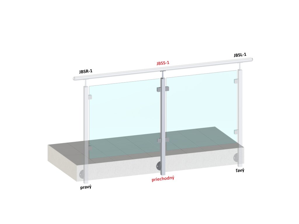 nerezový stĺp, bočné kotvenie, výplň: sklo, priechodný, vrch pevný (40x40mm), brúsená nerez K320 /AISI304Dodatočné parametre