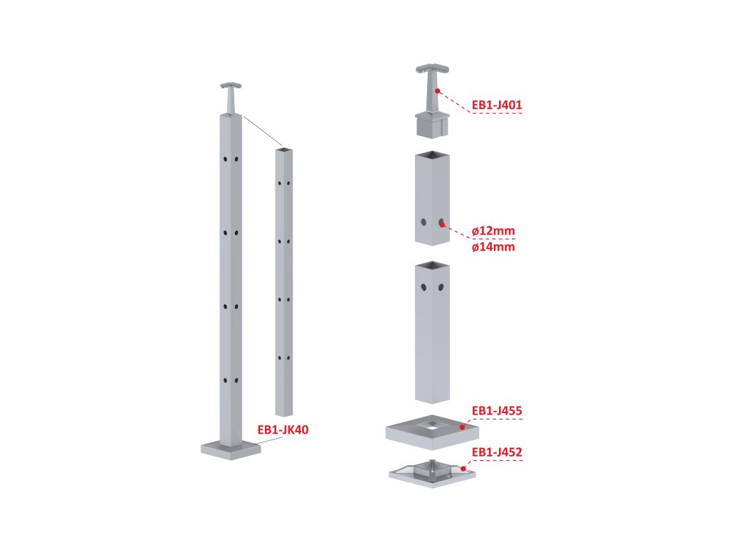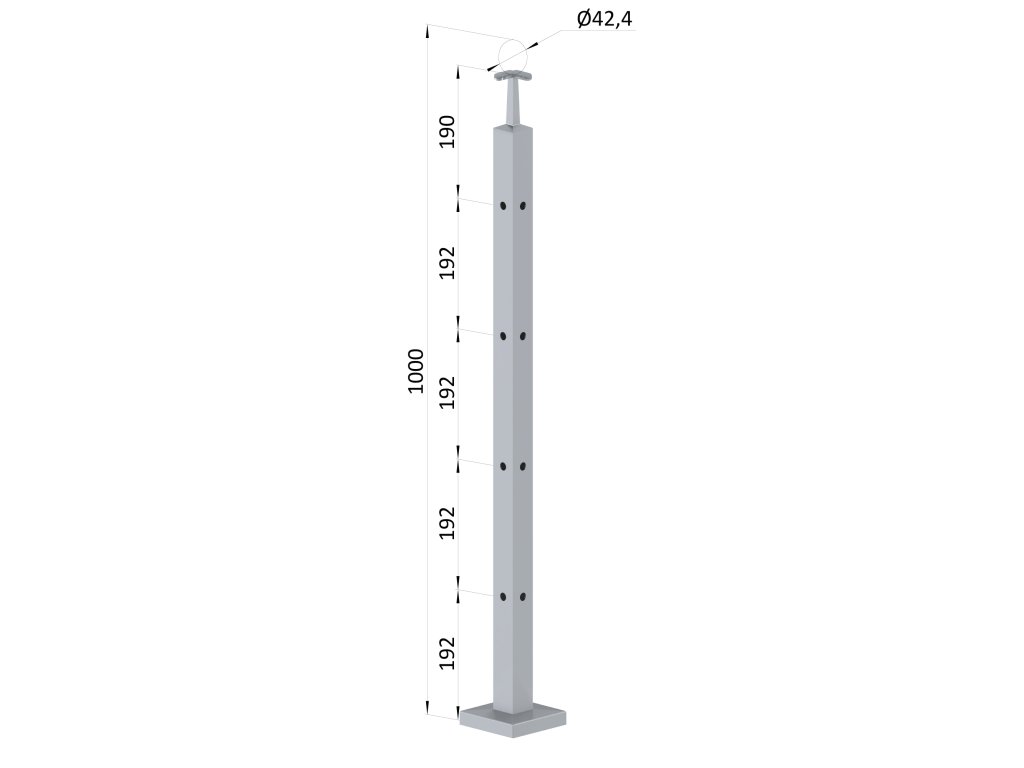 nerezový stĺp, vrchné kotvenie, 4 dierový rohový, vrch pevný (40x40mm), brúsená nerez K320 /AISI304