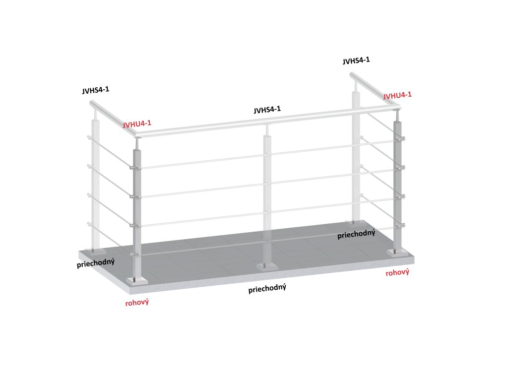 nerezový stĺp, vrchné kotvenie, 4 radový rohový, vrch pevný (40x40mm), brúsená nerez K320 /AISI304Dodatočné parametre