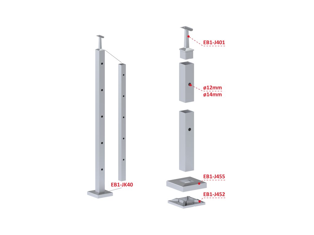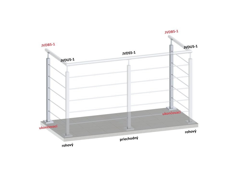 nerezový stĺp, vrchné kotvenie, 5 dierový koncový, vrch pevný (40x40mm), brúsená nerez K320 /AISI304Dodatočné parametre