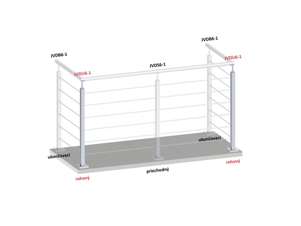 nerezový stĺp, vrchné kotvenie, 6 dierový rohový, vrch pevný (40x40mm), brúsená nerez K320 /AISI304Dodatočné parametre