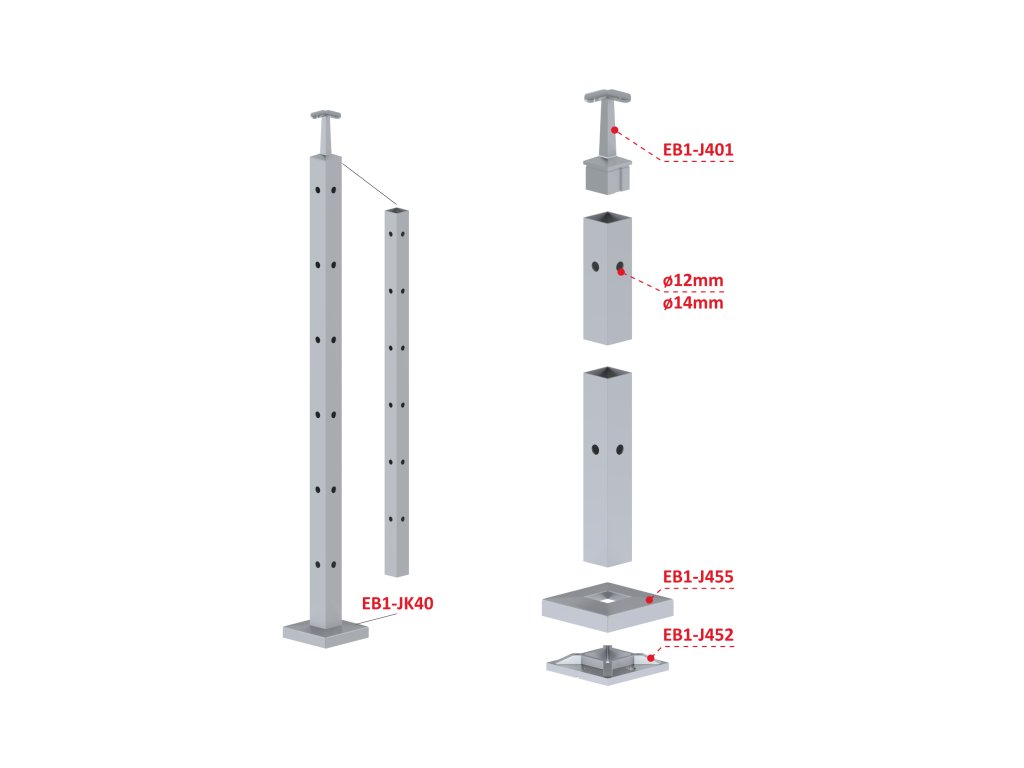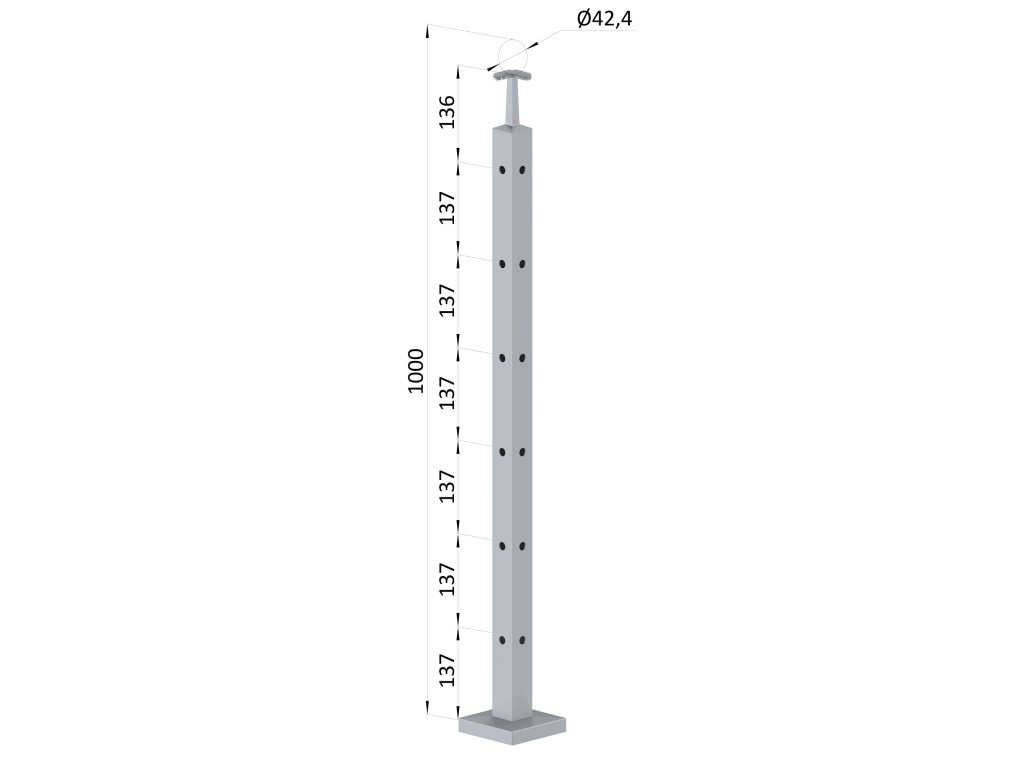 nerezový stĺp, vrchné kotvenie, 6 dierový rohový, vrch pevný (40x40mm), brúsená nerez K320 /AISI304