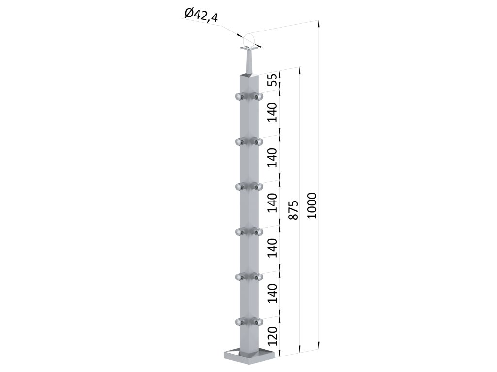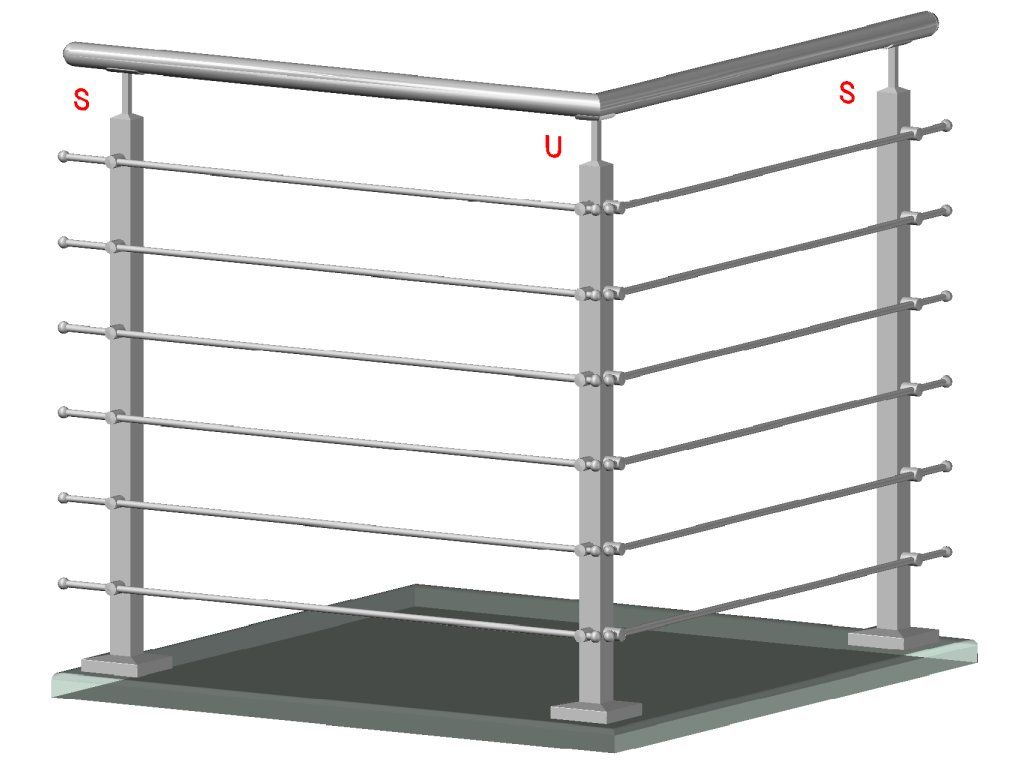 Nerezový stĺp, vrchné kotvenie, 6 radový rohový, vrch pevný (40x40mm), brúsená nerez K320 /AISI304