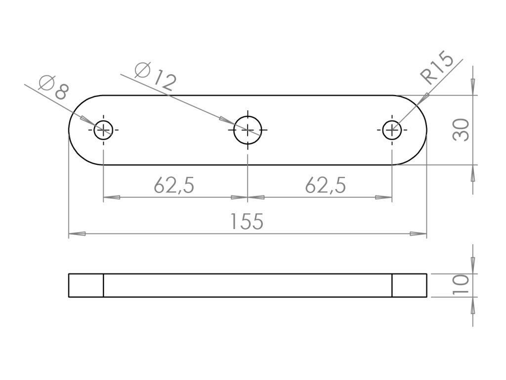 kotviaca platňa (155x30x10mm / M8 / M12), brúsená nerez K320 /AISI304Dodatočné parametre