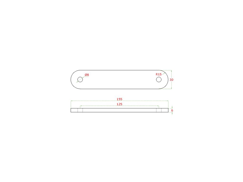 kotviaca platňa (155x30x6mm / M8), brúsená nerez K320 /AISI304Dodatočné parametre