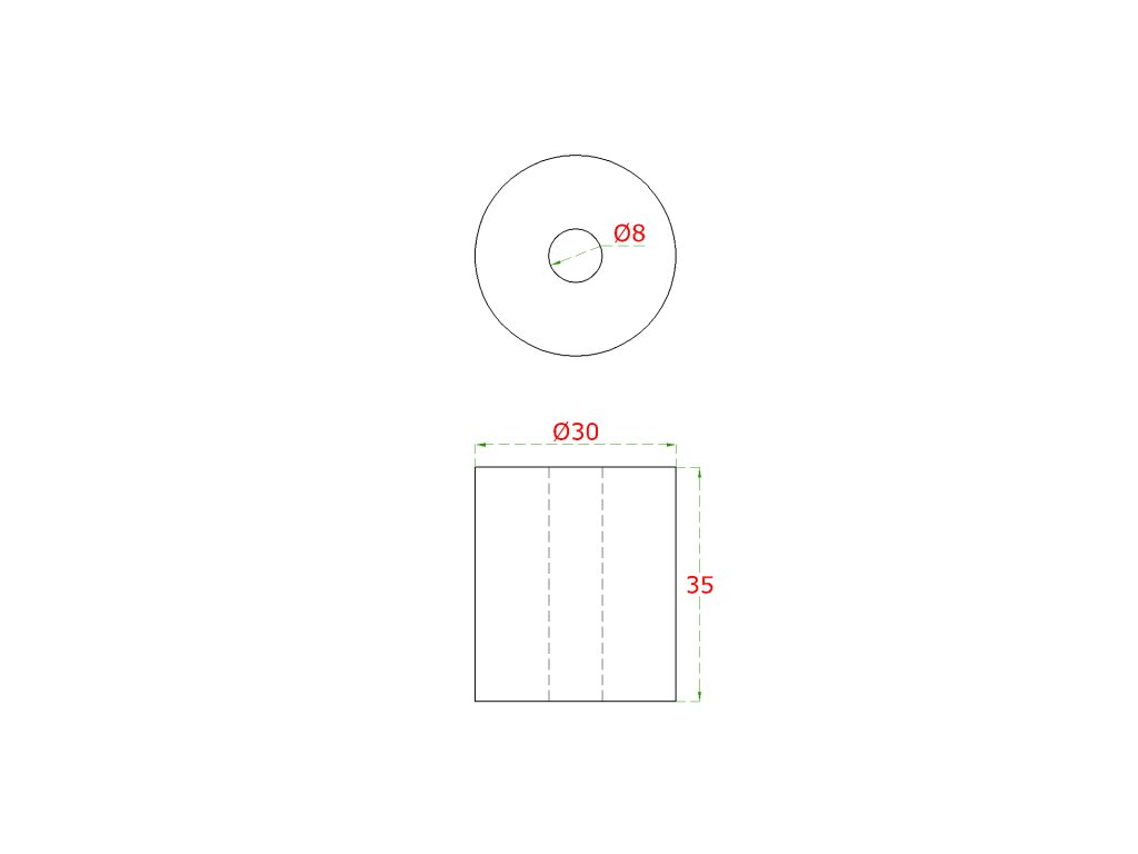 prechod na vymedzenie vzdialenosti, ø 30mm /ø 8mm /L: 35mm, brúsená nerez K320 /AISI304, bal: 1ks