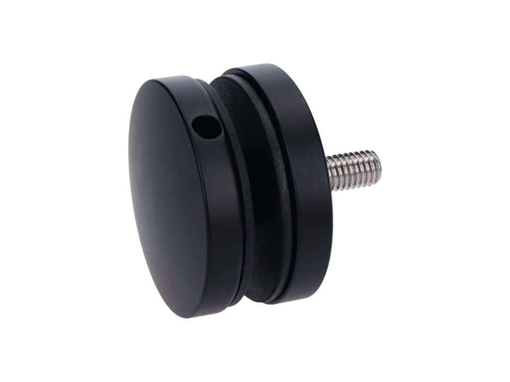Svorka bodová na sklo 8-16mm plochá (ø 50mm / M8), brúsená nerez K320 /AISI304, balenie obsahuje gumičky na sklo, farba: čierna