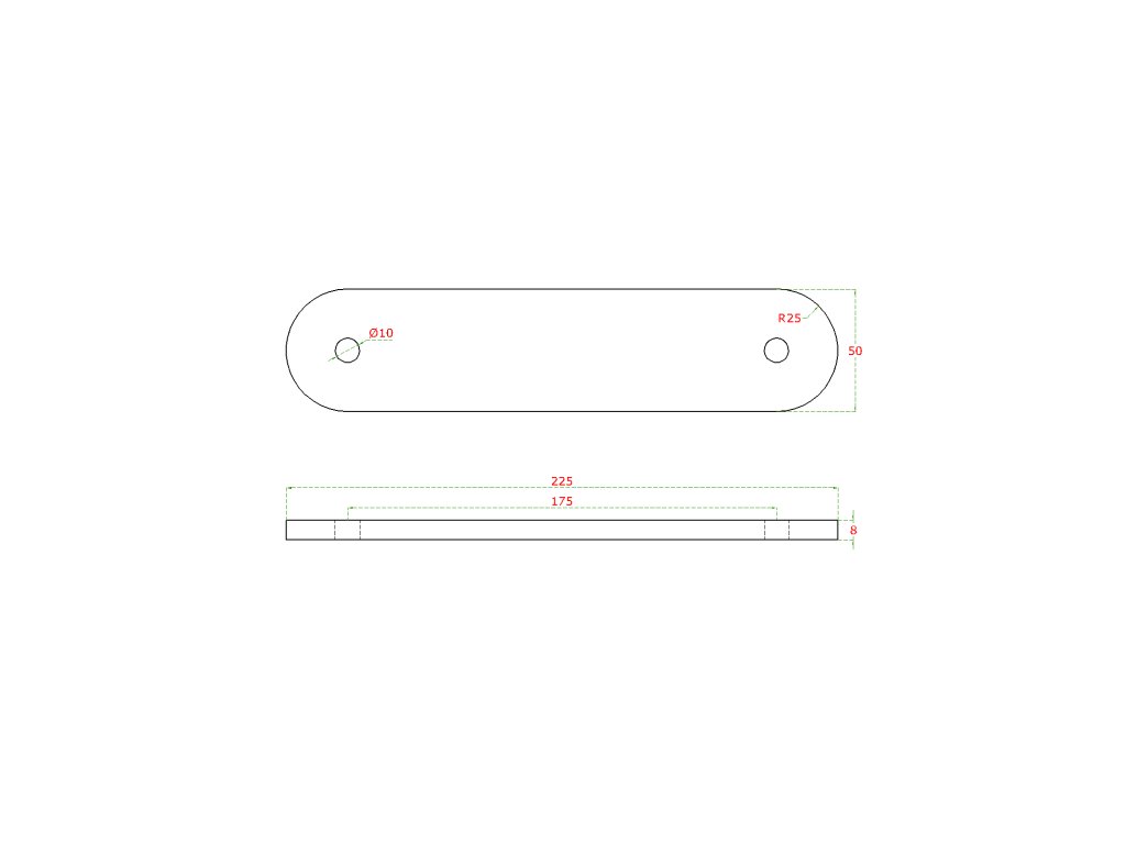 kotviaca platňa (225x50x8mm /M10), brúsená nerez K320 /AISI304Dodatočné parametre