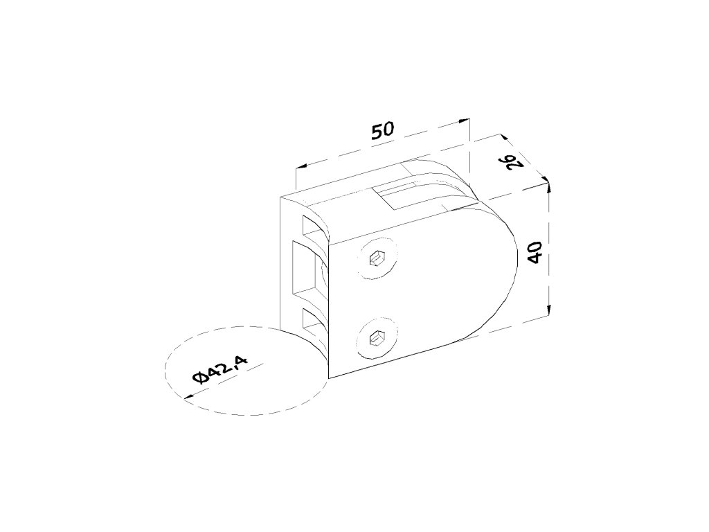 Svorka skla na trubku ø 42.4mm (50x40x26mm) pre sklo 6-10.76mm, brúsená nerez K320 /AISI304, farba: čierna, balenie neobsahuje gumičky na sklo