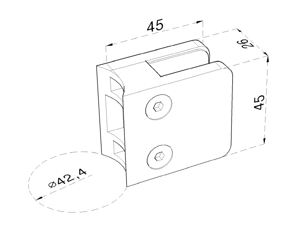 svorka skla na trubku ø 42.4mm (45x45x26mm), leštená nerez /AISI304, balenie neobsahuje gumičky na skloDodatočné parametre