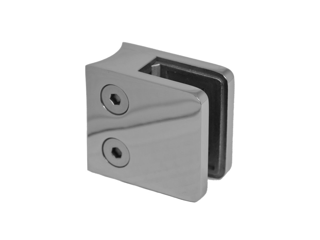 svorka skla na trubku ø 42.4mm (45x45x26mm), leštená nerez /AISI304, balenie neobsahuje gumičky na sklo