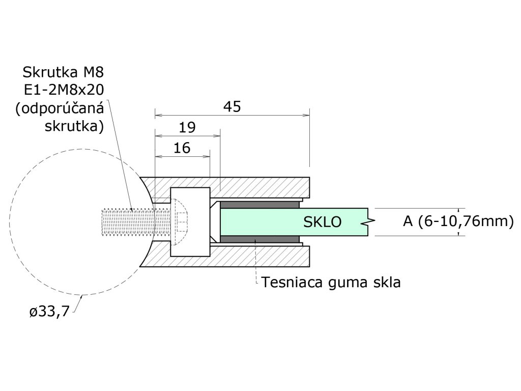 svorka skla / plechu na trubku ø 33.7mm (45x45x26mm), brúsená nerez K320 /AISI304, balenie neobsahuje gumičky na skloDodatočné parametre