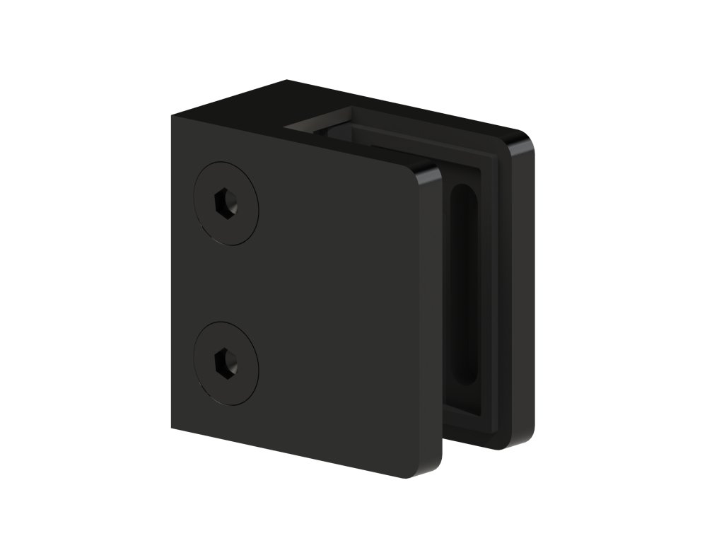 Svorka skla / plechu plochá (45x45x26mm) pre sklo 6-10.76mm, brúsená nerez K320 /AISI304, farba: čierna, balenie neobsahuje gumičky na sklo