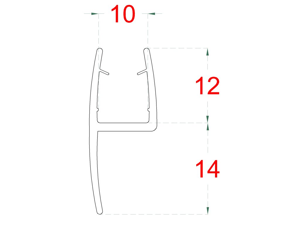 plastové tesnenie na sklo 10mm, medzi sklenené dvere a stenu alebo podlahu, 2200mmDodatočné parametre