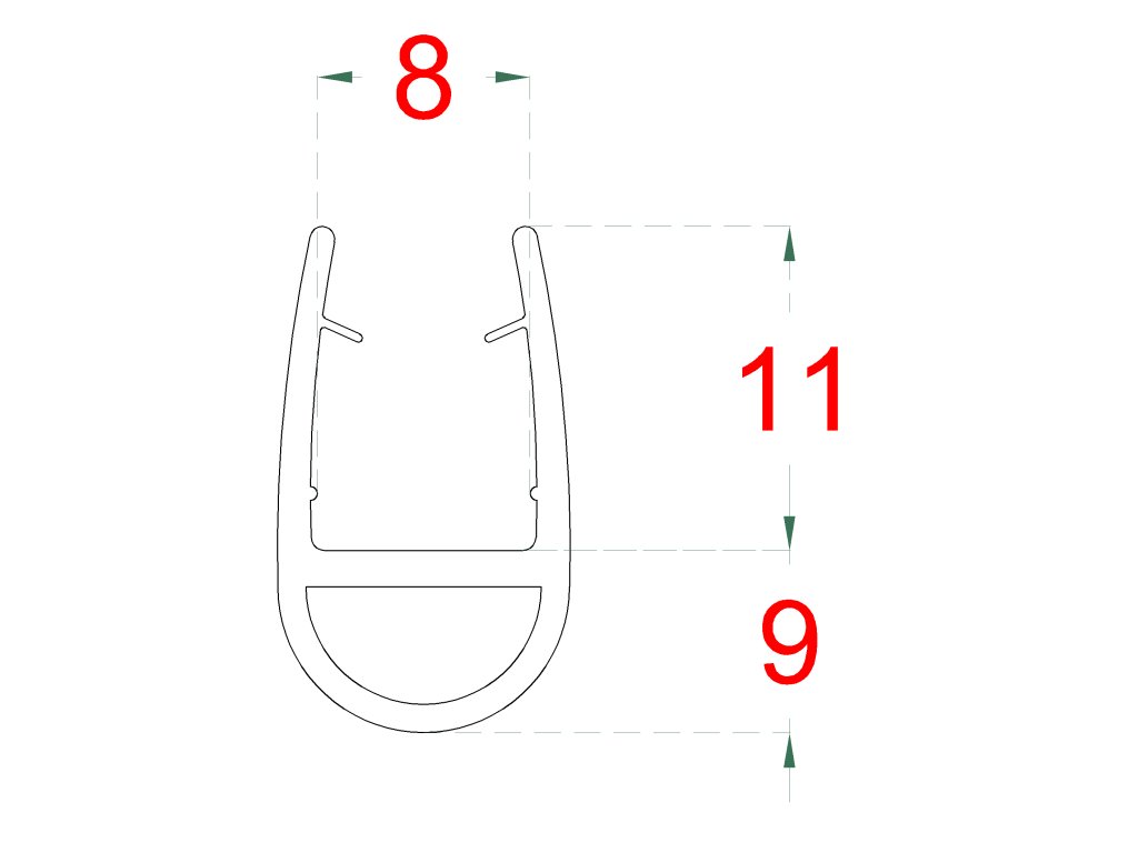 plastové tesnenie na sklo 8mm, medzi sklenené dvere a stenu alebo podlahu, 2200mmDodatočné parametre