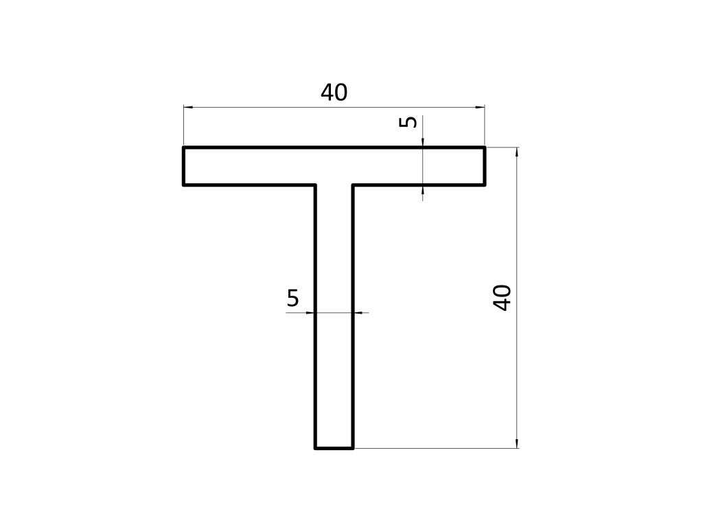 tyč prierezu T 40x40x5mm, čierna S235, rovnomerná L=3000mm, cena za 1ks(3m)