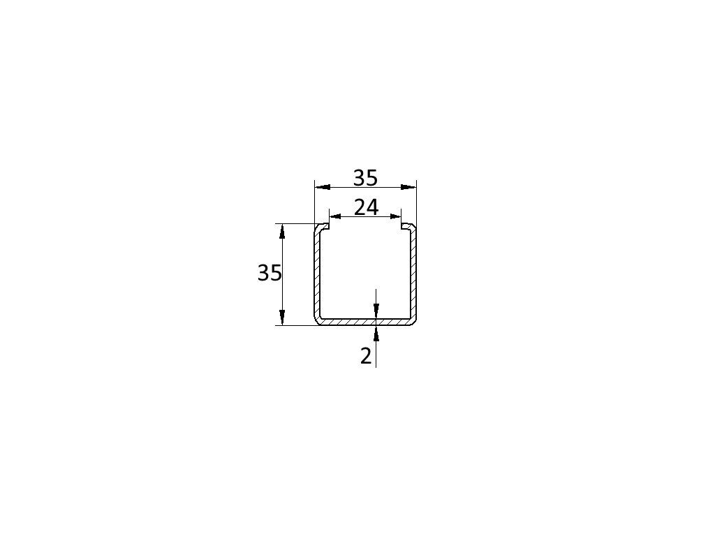 U-profil krycí 35x35x2mm, žiarovo zinkovaný, cena za 1 ks(6m),hladký L=6000mm