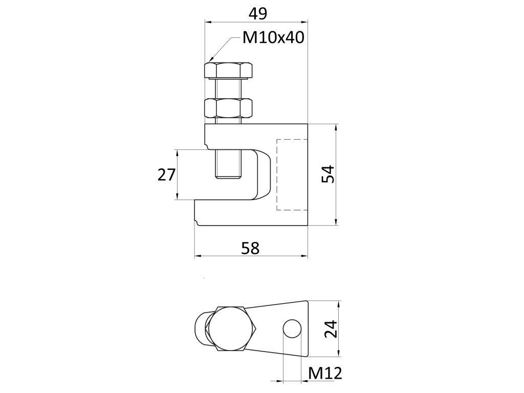 nosná svorka M12 0-26mm, nosnosť 2500N