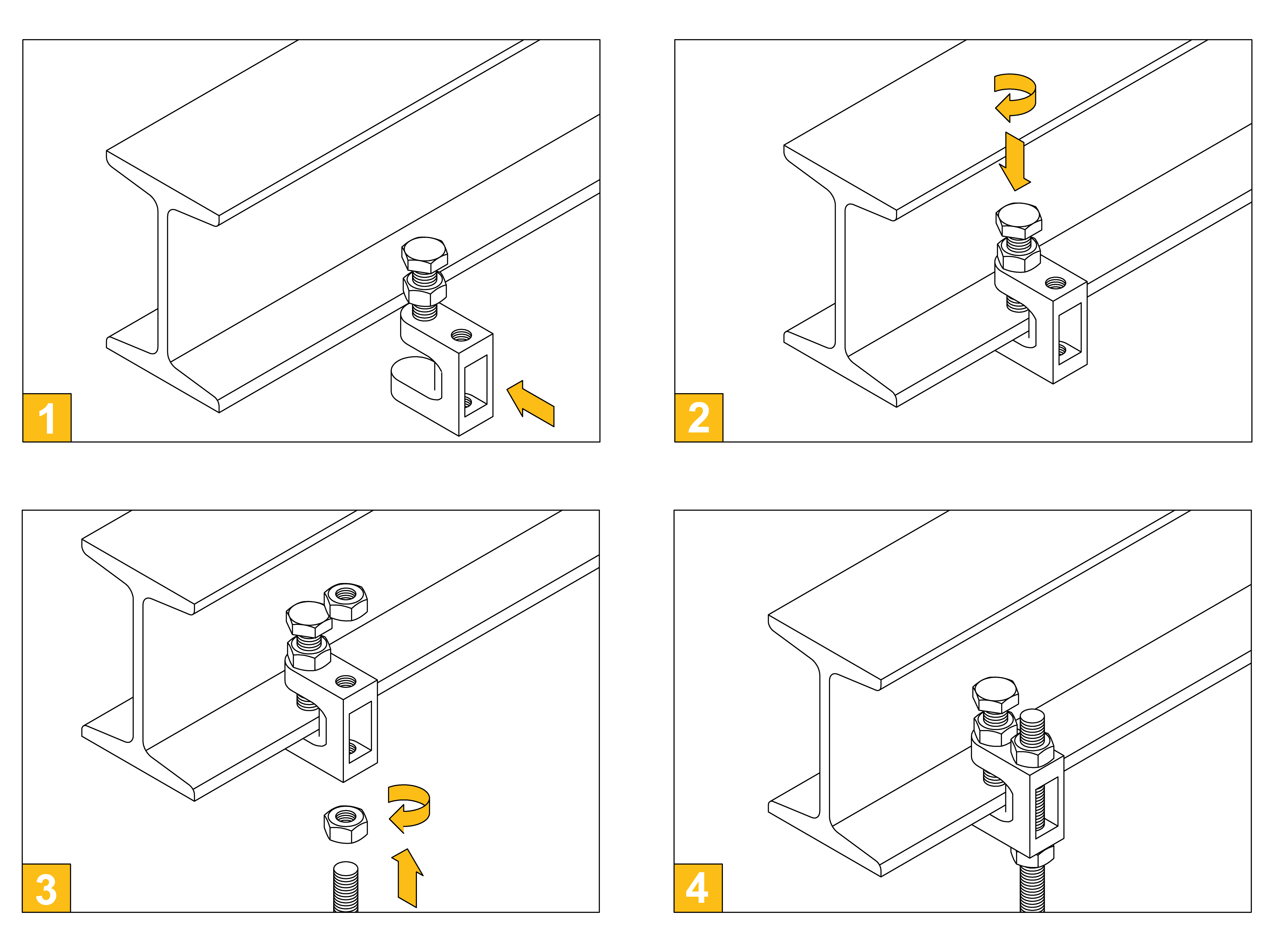 Pomocou nosnej svorky je možné upevnenie na valcované profily I, IPE, U, UPE, HEA, HEB, L bez vŕtania a zvárania.
