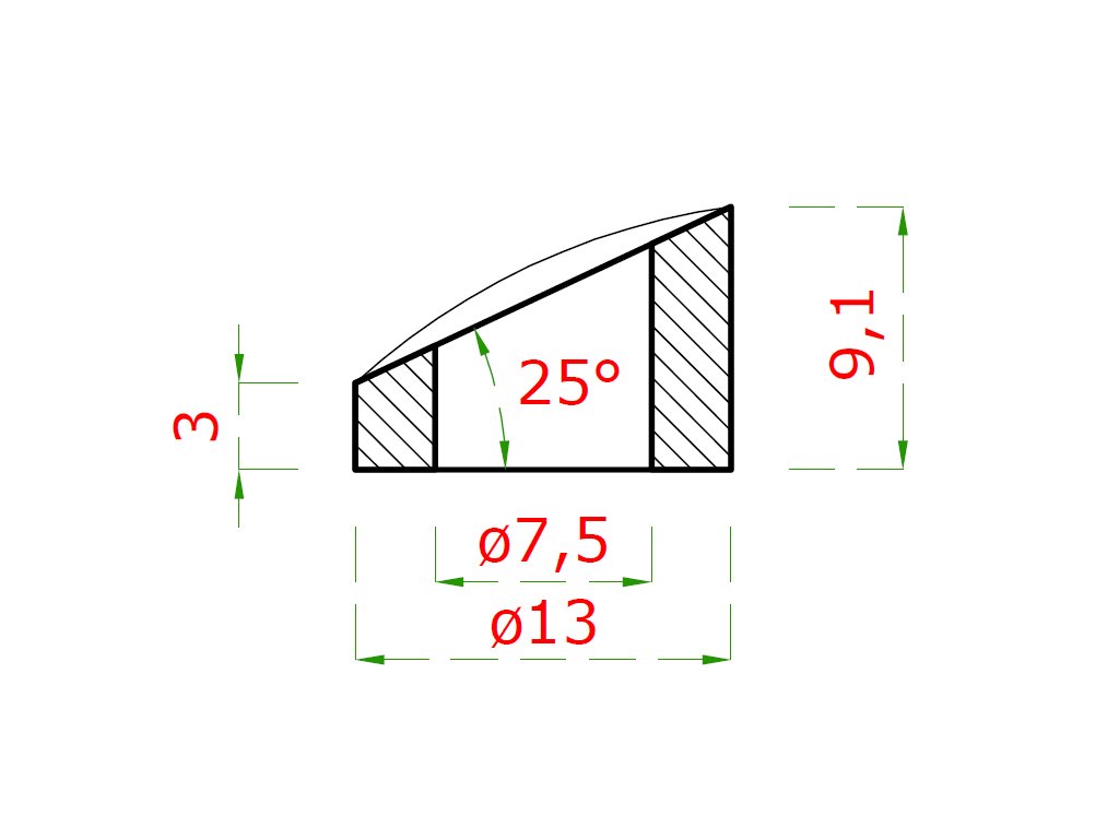 Podložka na trubku ø 42,4mm, uhol 25° (ø 13x2.75mm, diera ø 7.5mm), brúsená nerez K320 /AISI304