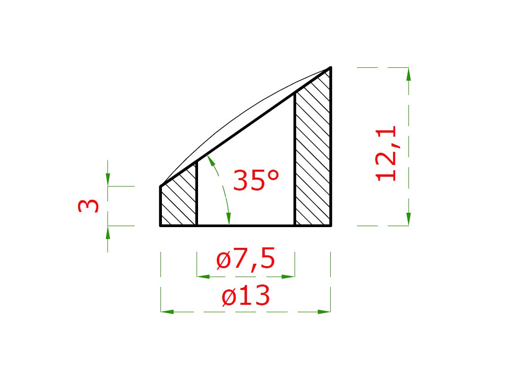 Podložka na trubku ø 42,4mm, uhol 35° (ø 13x2.75mm, diera ø 7.5mm), brúsená nerez K320 /AISI304