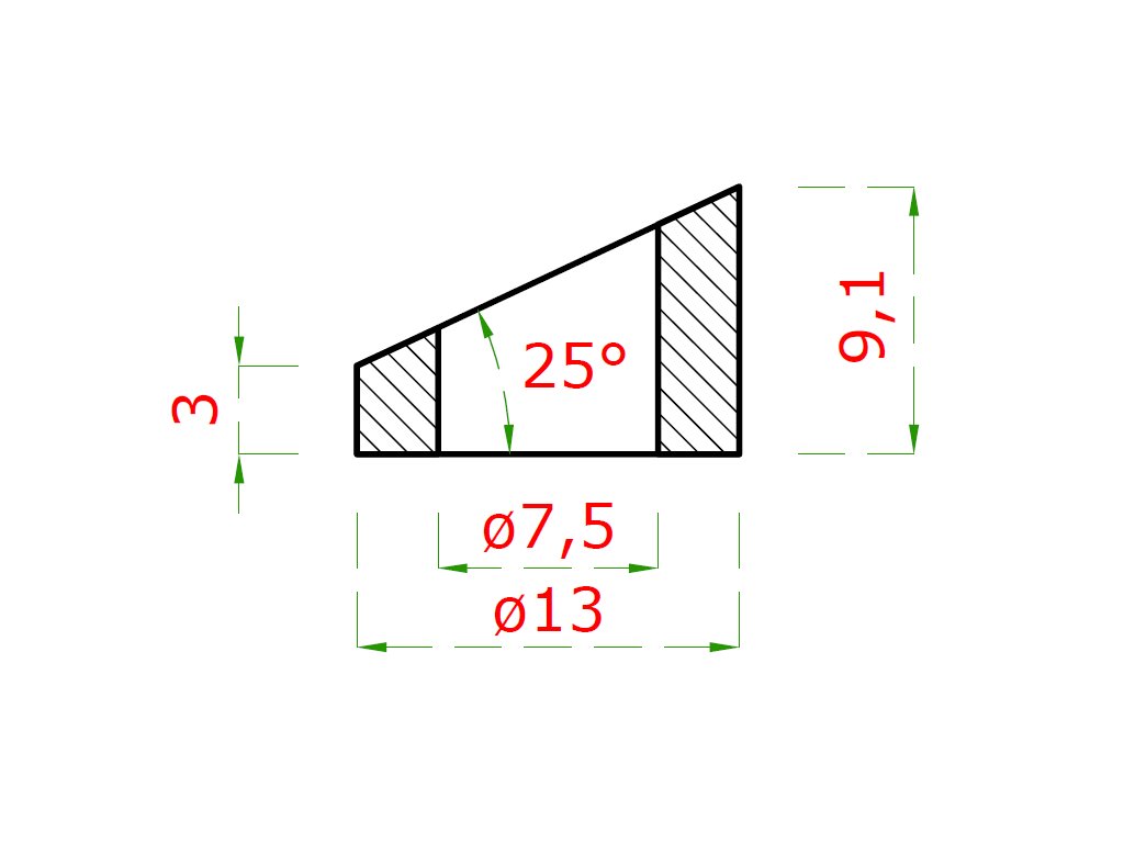 Podložka plochá, uhol 25° (ø 13x2.75mm, diera ø 7.5mm), brúsená nerez K320 /AISI304
