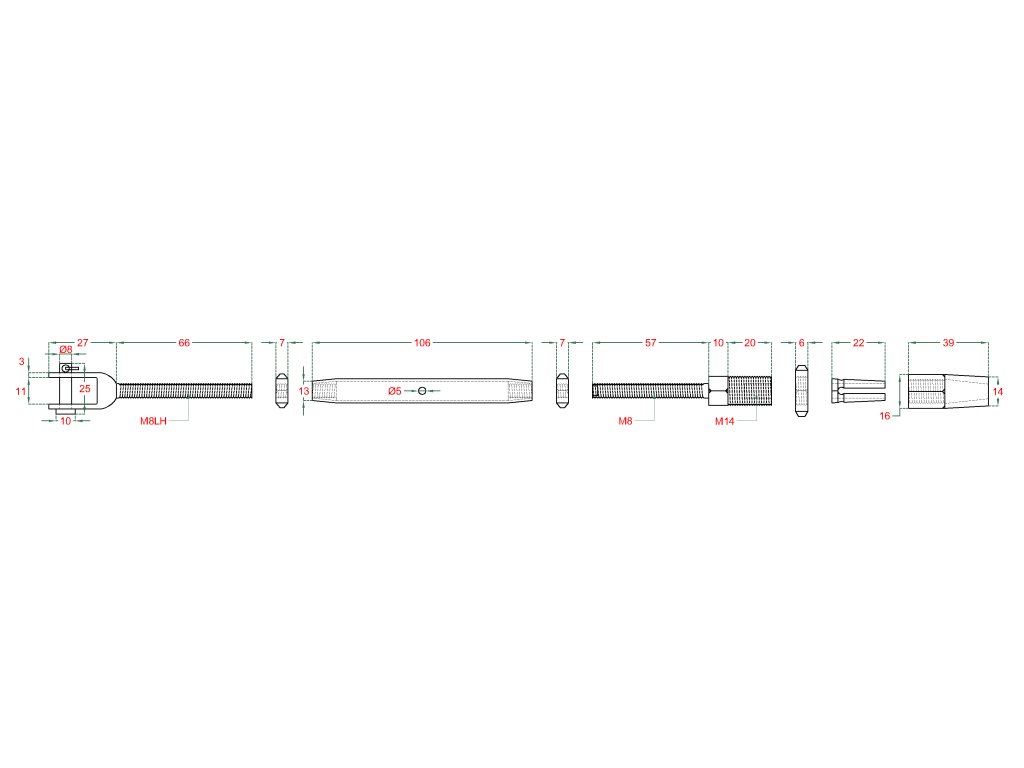 úchyt, šponovák pre nerezové lanko ø5mm so závitom M8 a LH8, brúsená nerez K320/ AISI304Dodatočné parametre