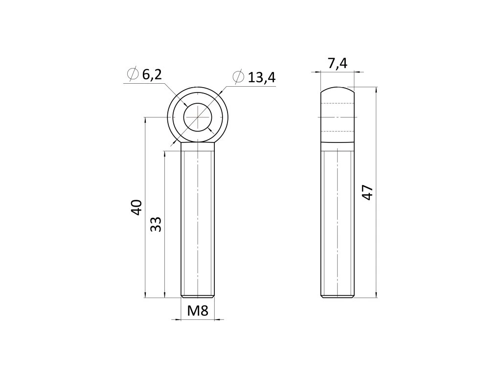 úchyt pre držiak lanka (M8 x 40mm), brúsená nerez K320 /AISI304 DIN444