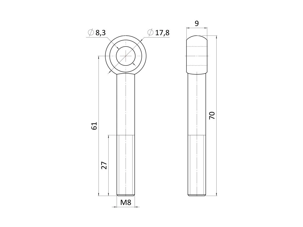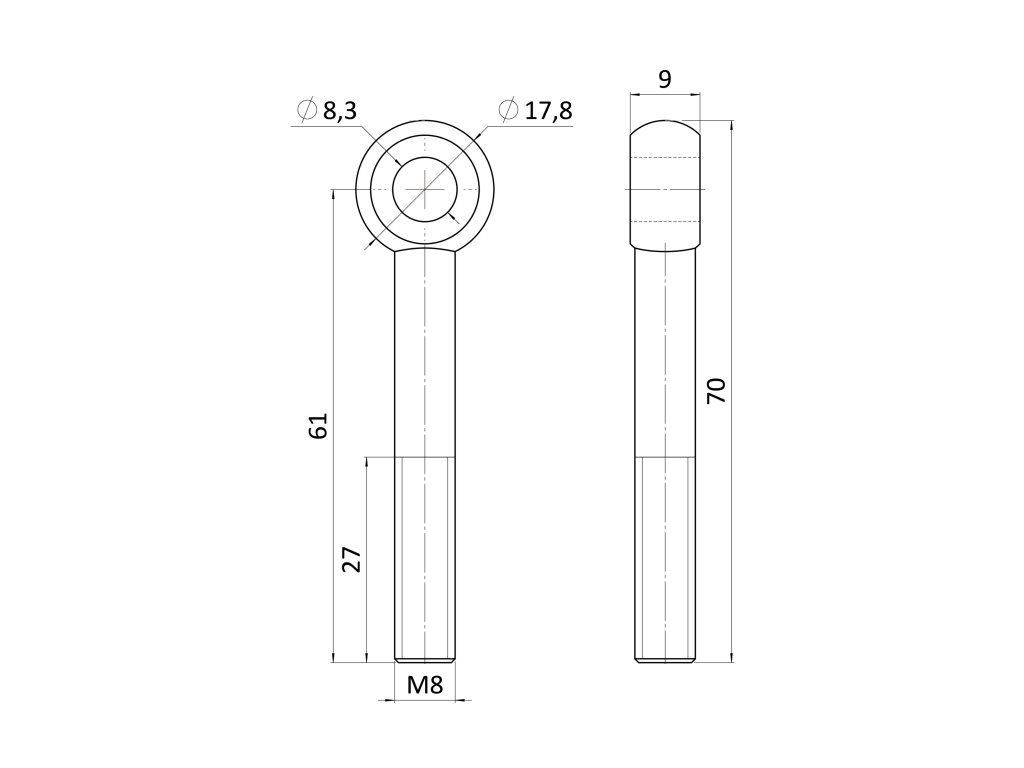 úchyt pre držiak lanka (M8 x 61mm), brúsená nerez K320 /AISI304 DIN444 EB1-LOM14