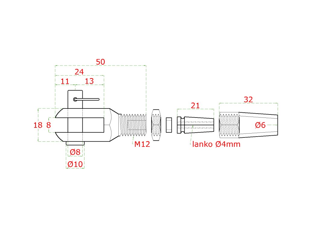 úchyt pre nerezové lanko ø 4mm, brúsená nerez K320 /AISI304Dodatočné parametre