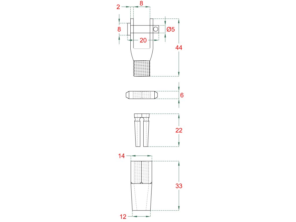 úchyt pre nerezové lanko ø 4mm, brúsená nerez K320/AISI304Dodatočné parametre