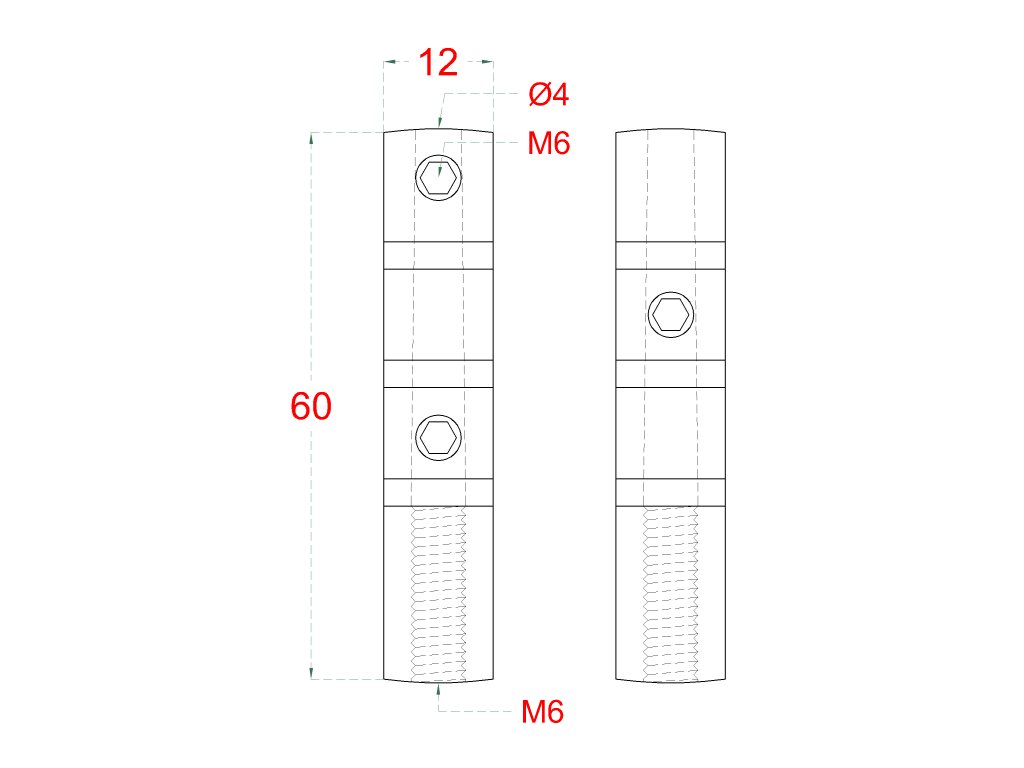 úchyt so závitom M6 pre nerezové lanko ø 4mm, brúsená nerez K320 /AISI304Dodatočné parametre