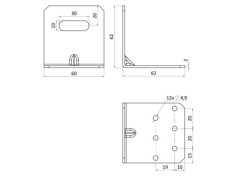 Nastaviteľný uholník s prelisom 60x60x60mm, pozink