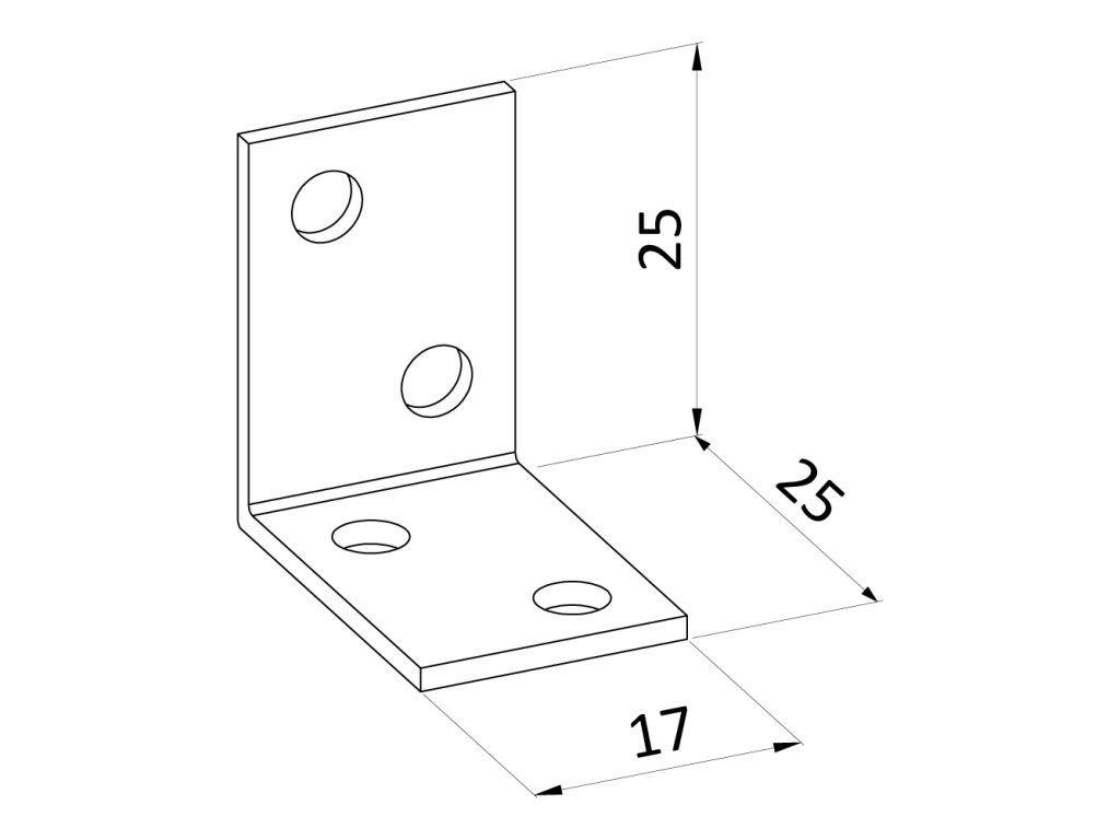 uholník 25x25x17mm, 1,5mm, galvanicky pozinkovaný, otvory priemer 4,5mm - v počte 4ks