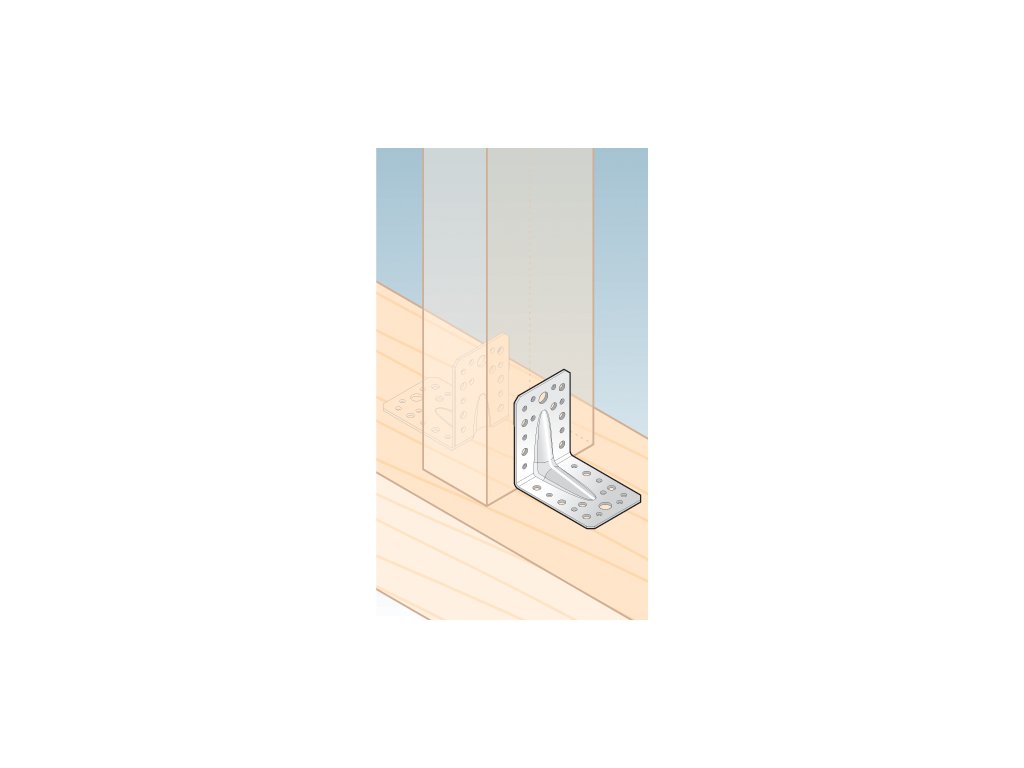 uholník s prelisom 90x90x65mm, 2,0mm, pozink, otvory priemer 5mm-16ks, 7mm-12ks, 11mm-2ks