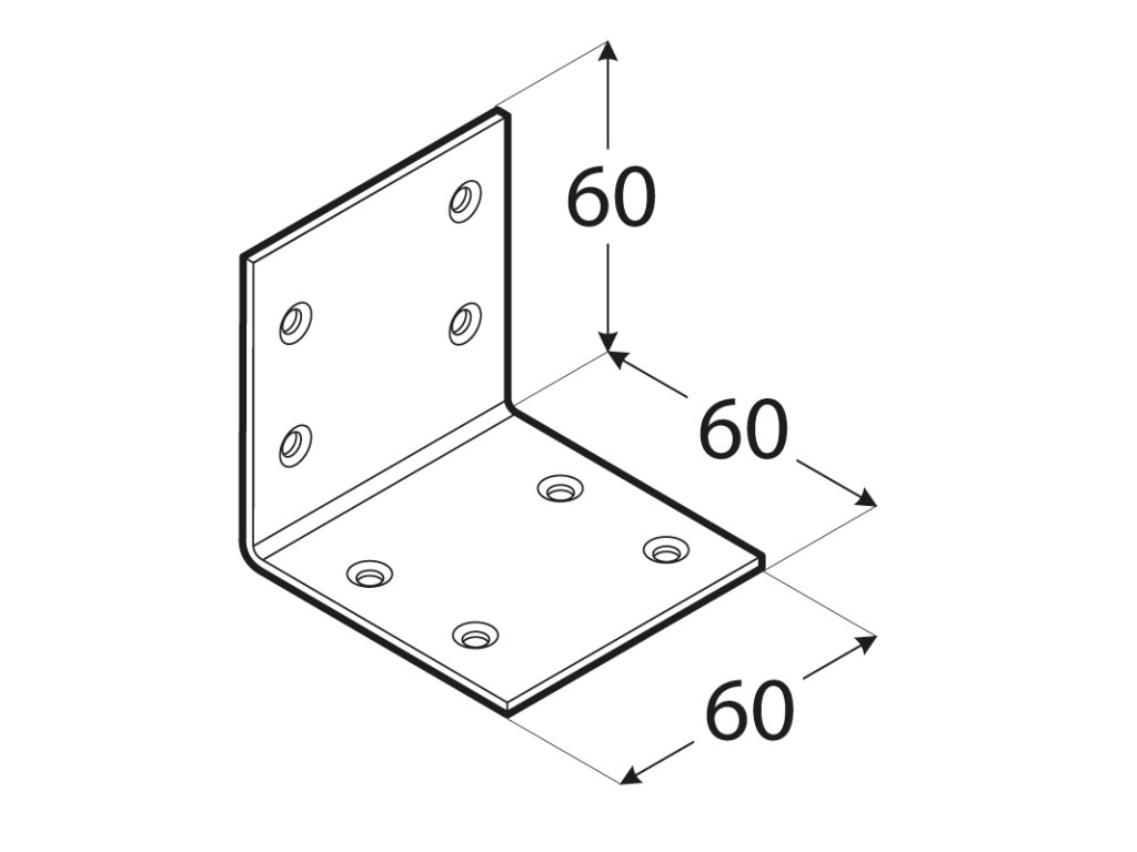 uholník široký 60x60x60mm, 2,0mm, pozink, otvory priemer 4,5mm - v počte 8ks