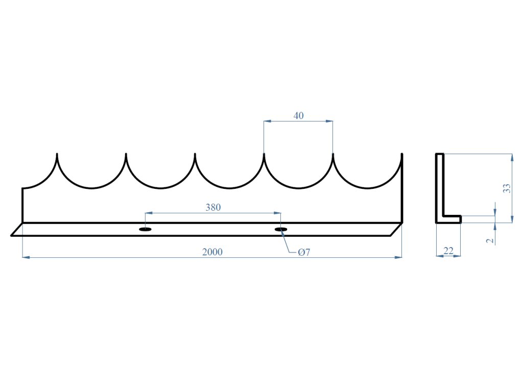 Ochranný hrebeň proti prelezeniu L-2000x2mm, ohýbaná, bez povrchovej úpravy