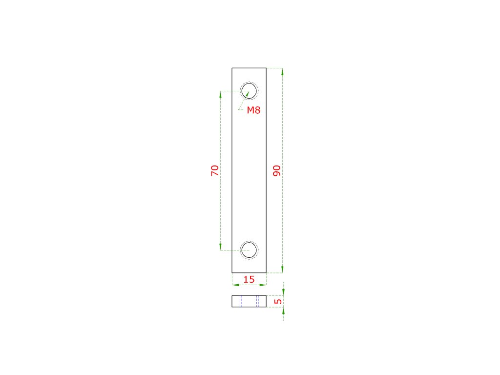 kotviaca platnička (plochá) 70x15x5mm, 2 x diera M8, rozteč dier: 70mm, bez povrchovej úpravy /AISI304Dodatočné parametre