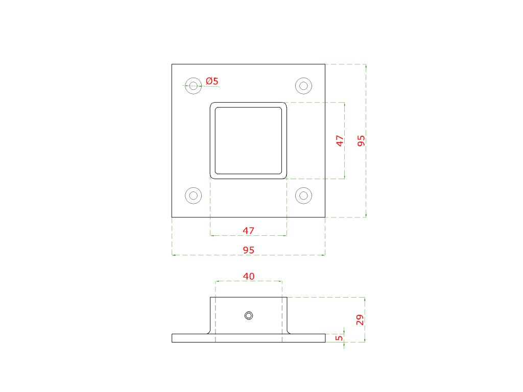 príruba spodná (95x95mm) na jokel 40x40mm, brúsená nerez K320 /AISI304Dodatočné parametre