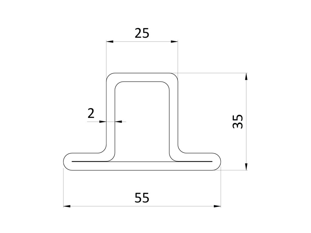 uzavretý profil T 55x34x25x2mm, čierny S235, hladký L=3000mm, cena za 1ks(3m), čierny bez povrchovej úpravy, predaj len v 3 a 6m dĺžkach